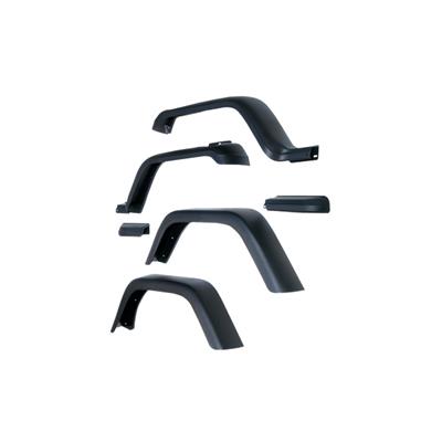 Need a little extra coverage for those over-sized tires? The Rugged Ridge 11607.01 7" fender flares gives you the extra coverage you need while providing the clean look of an original equipment design. Each oversized flare is constructed of virtually indestructible UV treated thermoplastic to provide years of service. The special UV treatment put on each flare provides protection from sun fading. If you go offroad and need to protect your vehicle from rock chips and debris, look to Rugged Ridge 7" oversized fender flares. The front flares are wider versions of the stock YJ flare, while the rear flares are an updated design based upon Jeep TJ flares. These TJ-style flares will also provide more room for taller tires and wider rims.