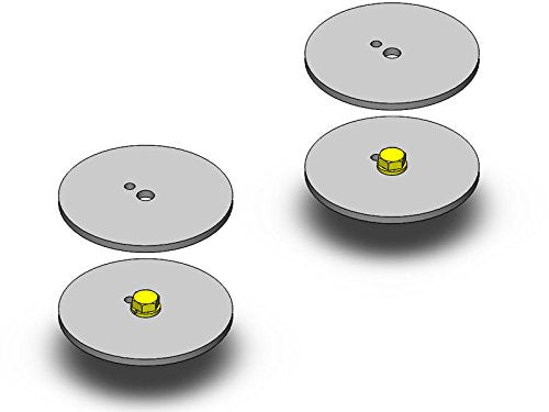 These are simple yet effective TJ, or LJ rear coil spring retainers. They are sold as a set of 4 with lower hardware. Simply drill and tap the lower coil bucket and sandwich the 4 inch round plate on top of the coil. And install another disk on the top of the coil between the bumpstop cup and the coil spring. And you won't have to worry about your coils ever falling out again.
