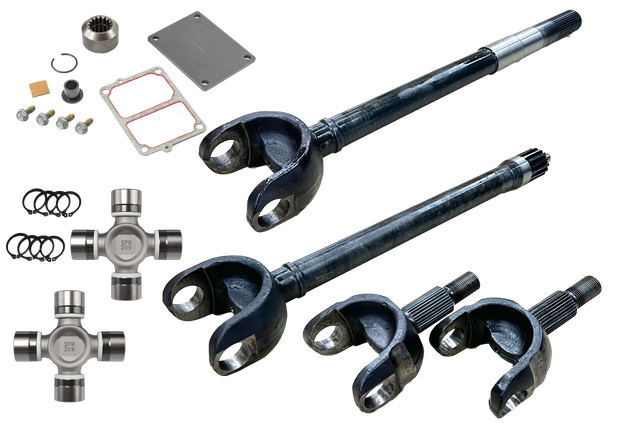 Revolution Gear and Axle Discovery Series 4340 Chromoly Front Axle Kit, fits 2018+ Wrangler JL and Gladiator JT models with Dana 44/M210 wide-track front axle, only works with the factory 32 spline locker. This front axle kit retains the passenger side 2 inner axle stock design and removes the front axle disconnect (FAD). Disconnect kit is included. Our front axle kit adds strength to the stock setup with superior 4340 Nickel Chromoly steel and larger Spicer 1410X u-joints. Note: the innermost passenger side axle must be retained and reused.